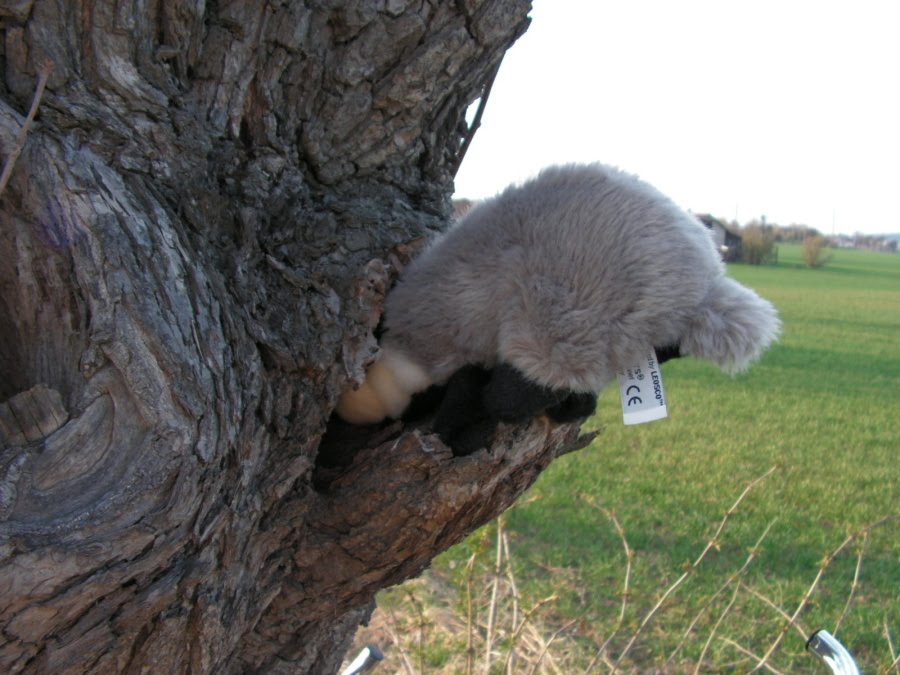 A tak jsem ho škodolibě navedla, aby vlezl do vykotlaného stromu, že tam určitě salám najde. Nenašel. Ale dobře jsem se pobavila při pohledu, jak mu trčí půlka těla ze stromu a nemůže se vyškrábat ven.