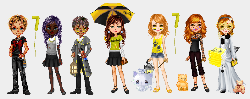 Když nás (Andyho, Elvu, Chaba, Luci, Piper, Veu a Vicky – viz foto níže v uvedeném pořadí) mdm Monny pustila do lesa, posedali jsme ke stromům, chytali poslední teplo zapadajícího slunce a čekali na opozdilce, především Chaba, kterého se uvolila mdm Monny z čisté dobroty srdce vzít navíc.