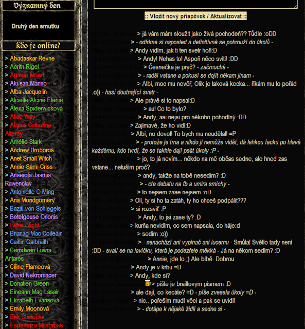 Někdo by očekával, že v Den smutku bude všude ticho, černo a zasmušilé tváře. Že se bude každý student chovat s patřičnou úctou, která těmto dnům náleží, nebo by alespoň měla. Ale… chyba lávky, přátelé.